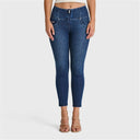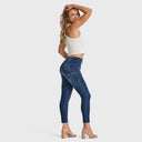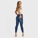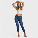 WRUP SNUG Jeans - High Waisted - Petite Length - Dark Blue + Blue Stitching