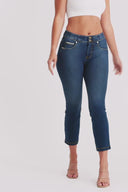Incredibly comfortable form-fitting fabric with a waistband that contours your waistline securely, sitting higher than our traditional mid-rise styles. Looks like a traditional straight leg denim pant but in the worlds most comfortable Freddy fabric.