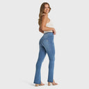 N.O.W® Denim - High Waisted - Petite Flare - Light Blue + Blue Stitching