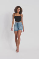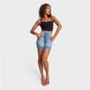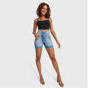 WRUP SNUG Jeans - High Waisted - Shorts - Light Blue + Blue Stitching