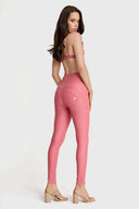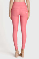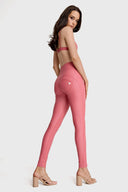 WRUP Faux Leather with Button Detail - Super High Waisted - Full Length - Rosey Pink