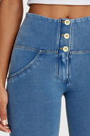 WRUP Denim - 3 Button High Waisted - Full Length - Light Blue + Yellow Stitching
