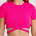 Cropped Wrap Around T Shirt - Pink