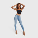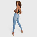 WRUP SNUG Jeans - Mid Rise - Full Length - Light Blue + Yellow Stitching