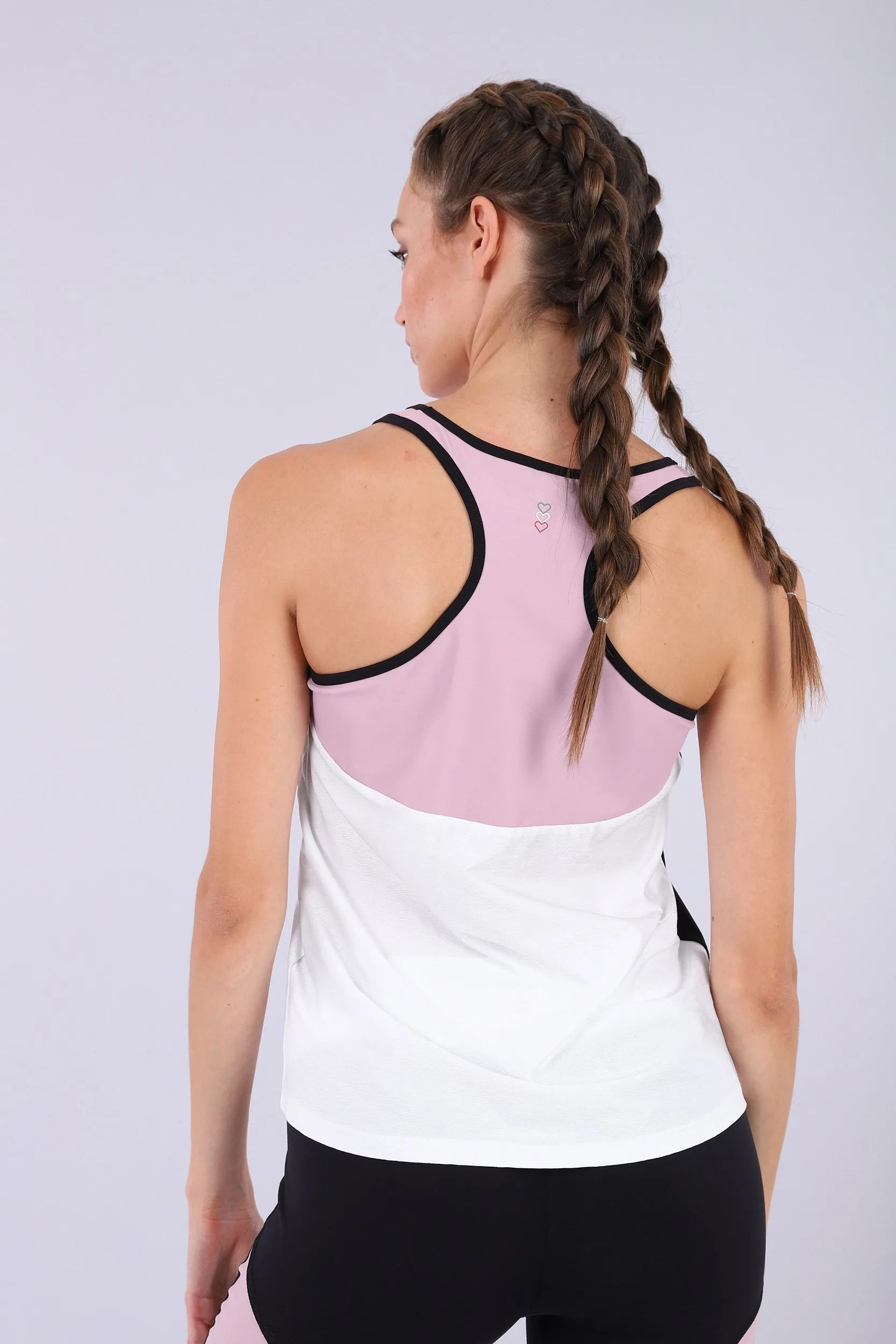 MII Racer Back Tank Top - White + Pink