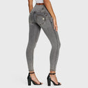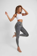 WRUP Denim - 3 Button High Waisted - Petite Length - Grey + Yellow Stitching