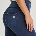 N.O.W® Denim - High Waisted - Petite Flare - Dark Blue + Blue Stitching