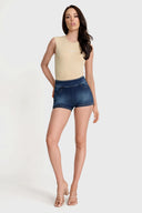 NOW Denim - High Waisted - Shorts - Dark Blue + Beige Stitching