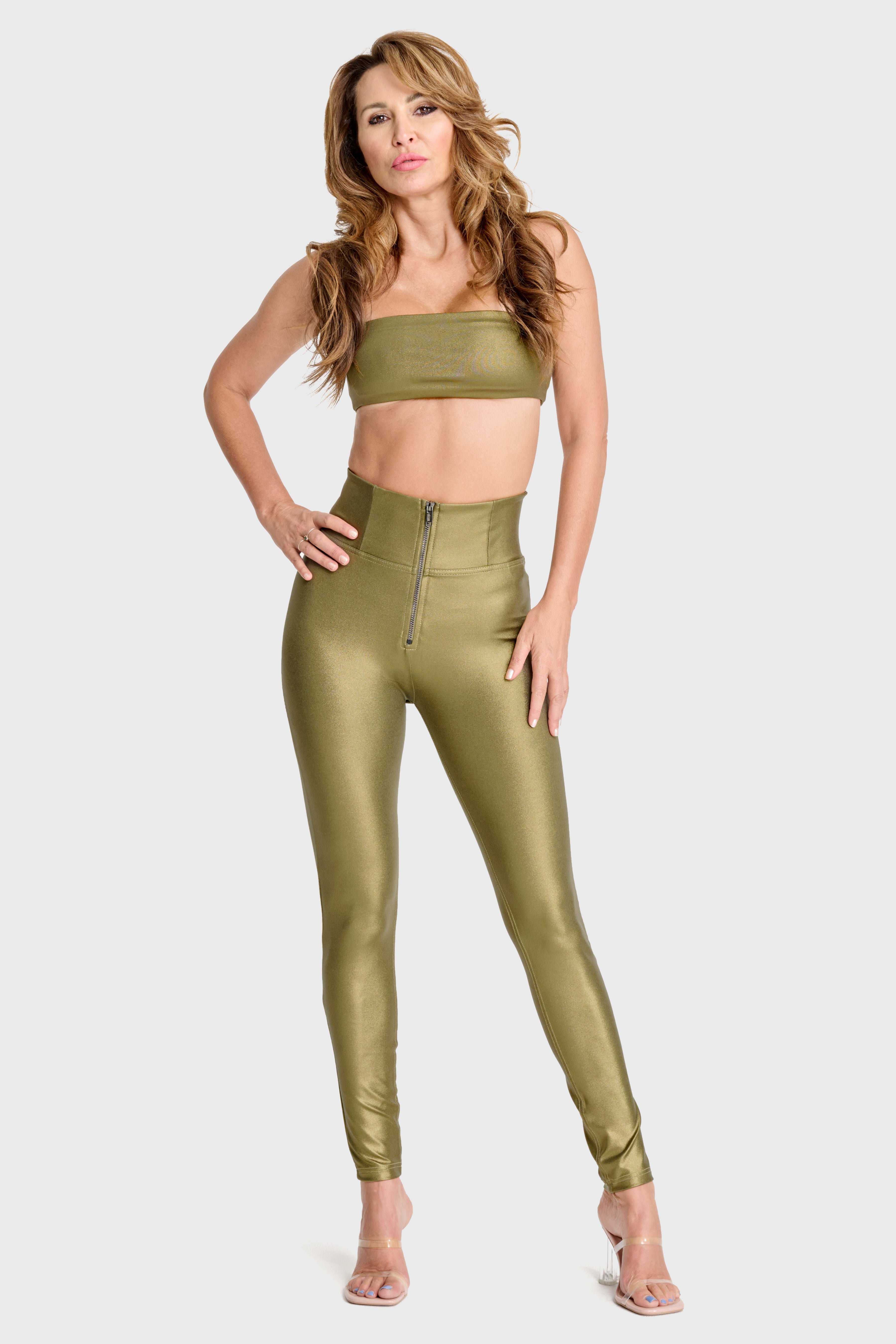 WRUP Disco Pants - Super High Waisted - Full Length - Olive Green