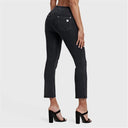 Incredibly comfortable form-fitting fabric with a waistband that contours your waistline securely, sitting higher than our traditional mid-rise styles. Looks like a traditional straight leg denim pant but in the worlds most comfortable Freddy fabric.